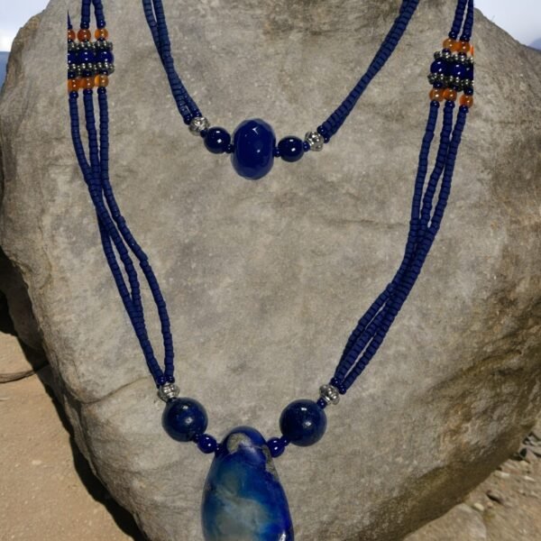 This necklace is so classy and elegant. Surely an eye-catching piece of jewelry. It is made of royal blue lapis lazuli beads in the shape of faceted tubes.
