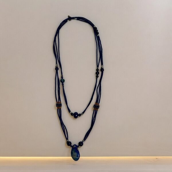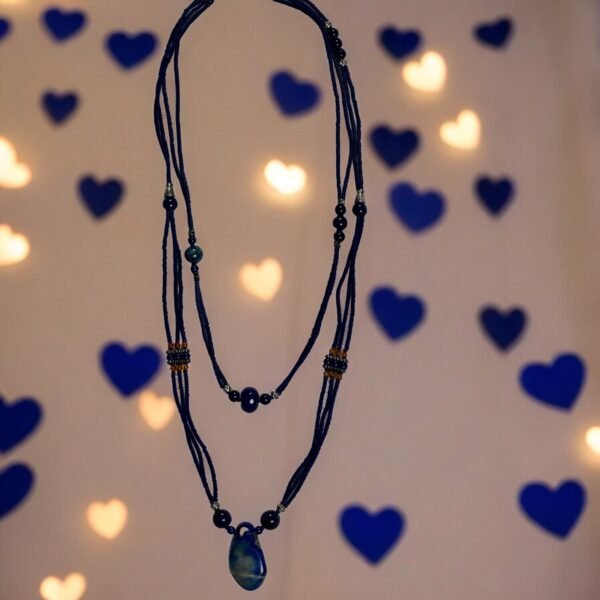 This beaded semi-precious Lapis Lazuli stone necklace gives you a decent and elegant look. The royal feel will elicit while wearing this, beautiful semi-precious stones necklace. This gorgeous piece has tiny dangling pieces at the bottom of the necklace. Nicely polished semi-precious stones are beaded to make this necklace more pretty.