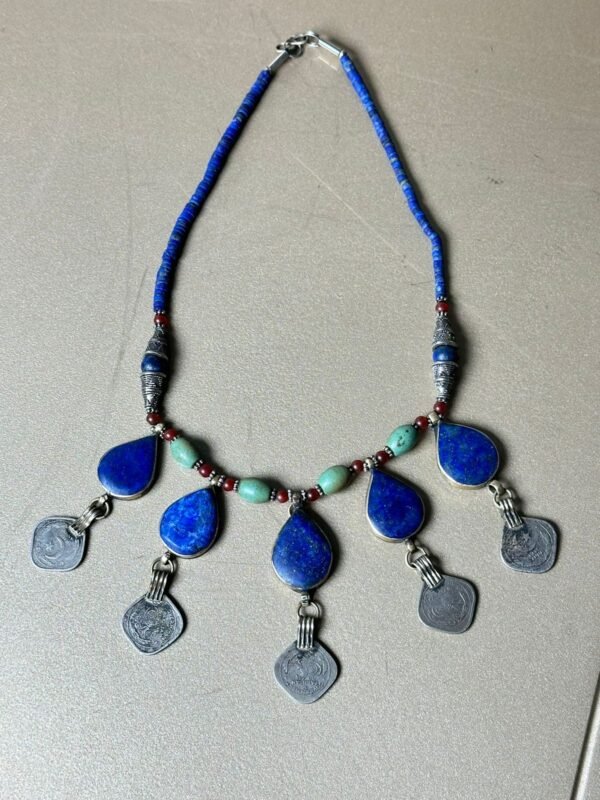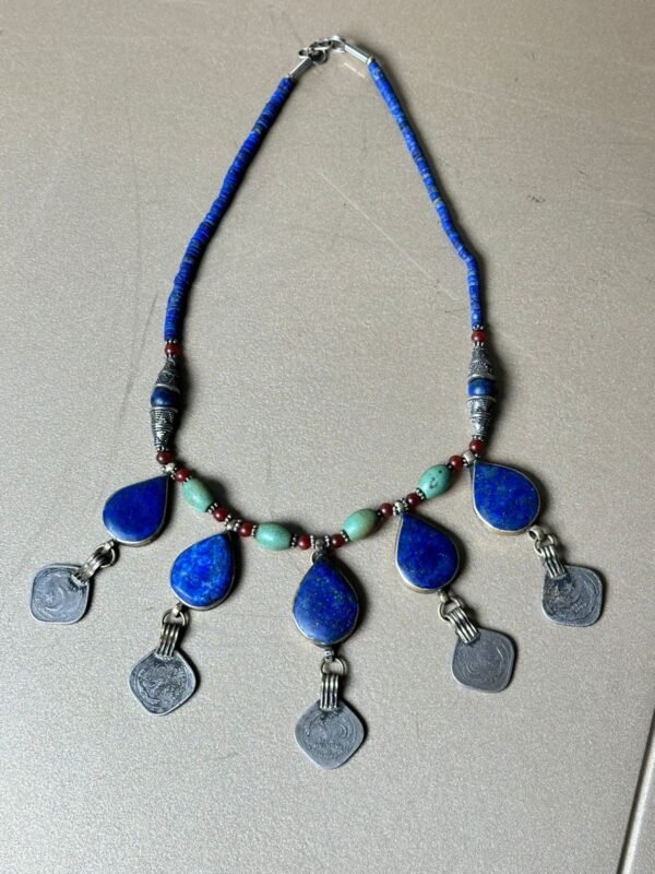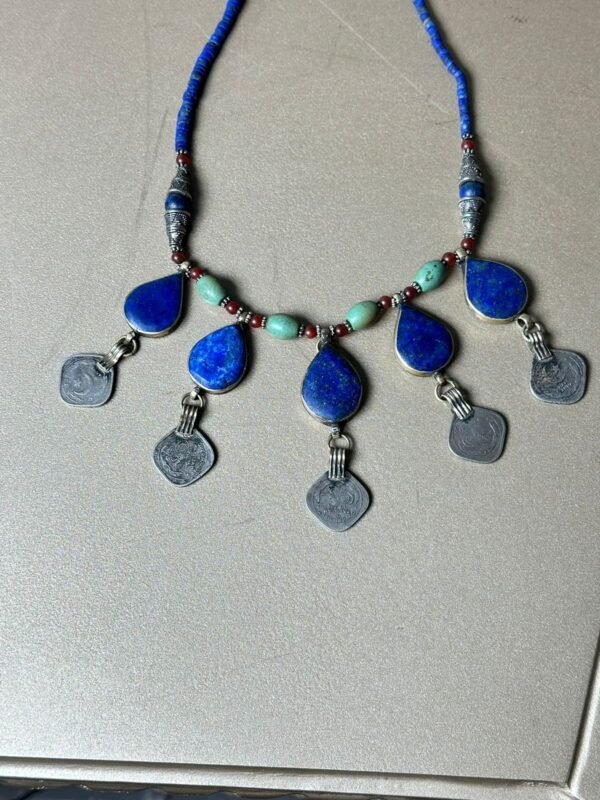 The finest quality of material is used while crafting this extraordinary jewelry piece. The lock used to wear this necklace is of ancient style. This lapis lazuli stone necklace is not adjustable and it is well crafted. South Asian craftsmen have worked hard while making this beautiful necklace.